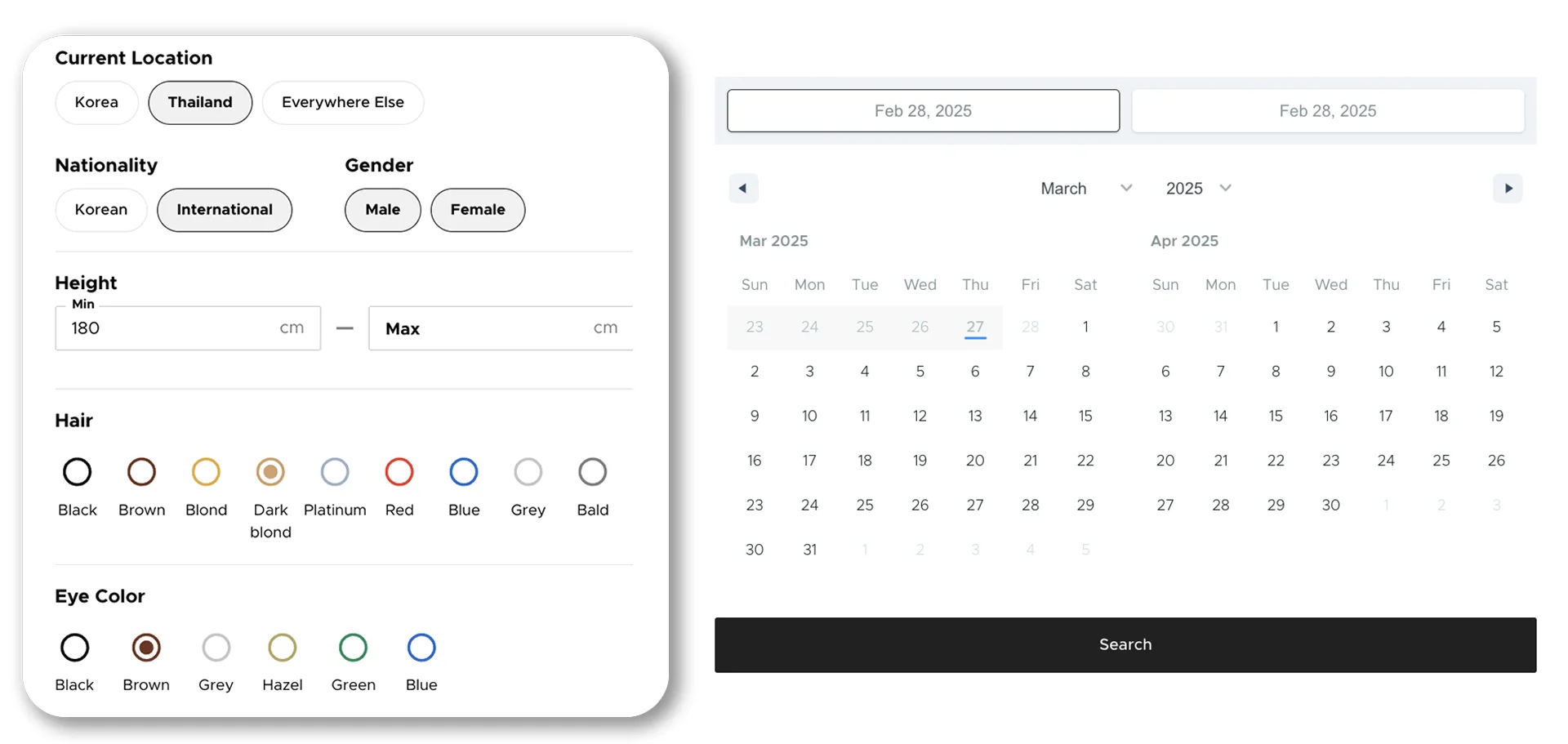 ā Gender & height : Find models that fit your concept
