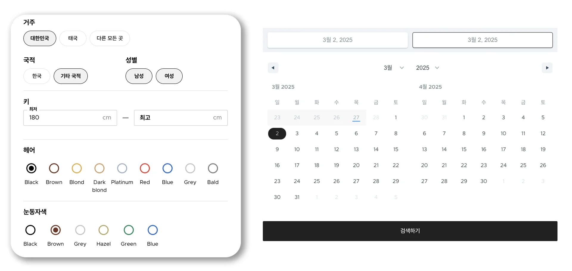 특정 국가의 외국인 모델을 찾고 싶다면, 간단한 필터 설정만 하면 돼요. 모델의 국적을 설정하고, 성별을 선택하면 원하는 조건에 맞는 모델을 빠르게 찾을 수 있어요. AI 추천 시스템을 활용하면 '밝은 느낌의 커머셜 모델', '혼혈 느낌의 마스크' 등 세부적인 특징까지 고려한 추천을 받을 수도 있어요.