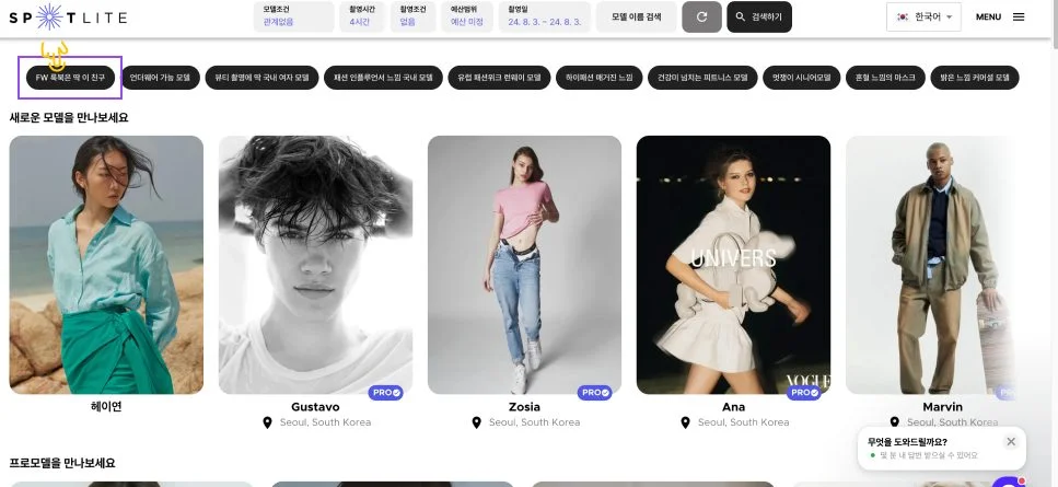 안녕하세요. 전 세계 모델을 가장 쉽고 빠르게 만나는 곳, 스포트라이트입니다.