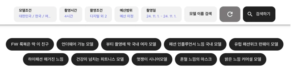 원하는 모델 이미지에 적합한 키워드를 클릭해 보세요.