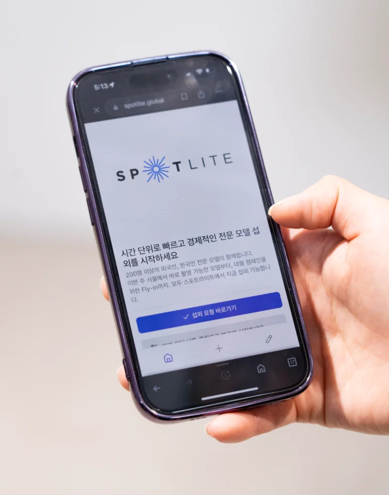 전 세계에서 아직 해결되지 않은 문제 중 하나가 모델 섭외 문제인데요. 패션모델 업계에서 오래 있었던 남편의 제안과 제 안에 저도 모르게 있던 창업가 기질이 합쳐져 함께 스포트라이트를 만들었습니다. 스포트라이트는 전문 모델의 서치, 일정 조율, 견적 비교, 계약 등을 자동화하여 전문 모델과 브랜드의 고민을 해결하며 보다 혁신적인 섭외 워크플로우를 지원하고 있어요.