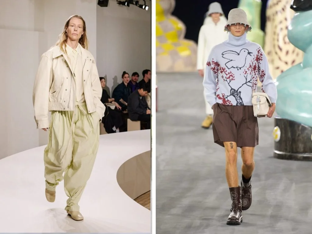 몇 년째 여성 패션의 중심인 오버사이즈가 이제 남성 패션계에도 뒤따라 열풍이 불고 있어요. 2025년 S/S 남성 패션위크의 핵심 키워드는 단연 ‘오버사이즈’예요. 여성 패션과 마찬가지로 오버사이즈 블레이저와 펑퍼짐한 테일러드 팬츠 중심의 오버핏 트렌드가 이번 패션위크에서 목격됐어요. 과거의 미니멀리즘과는 대조적으로 부피감 있는 디자인과 볼륨감 있는 실루엣이 이번 시즌에서 두드러지는 특징이었습니다.