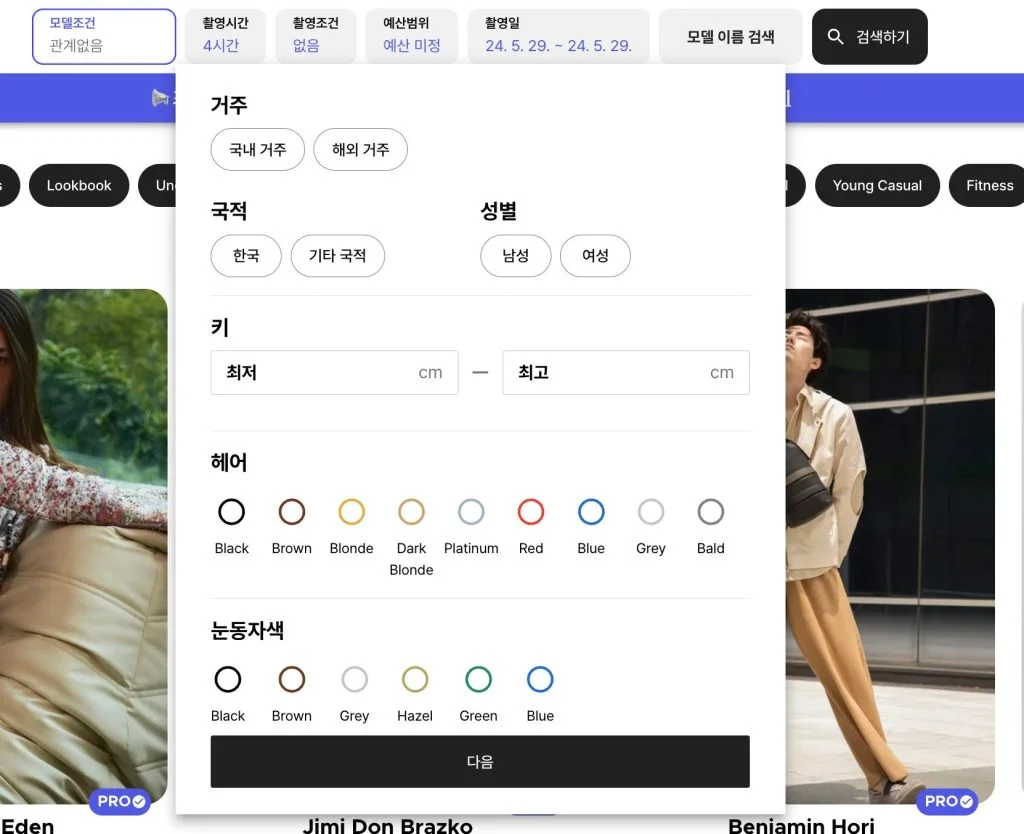 원하는 모델 캐스팅, 엄청난 시간과 공이 필요하지 않아요! 클릭 몇 번에, 몇 초만에 원하는 조건의 모델 리스트를 받고 견적까지 한 번에 의뢰해 보세요!